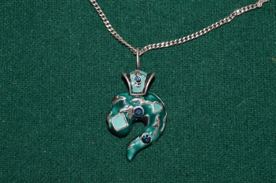 An enamel pendant and chain.