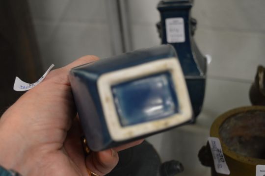 A pair of Chinese blue glazed square shaped vases.