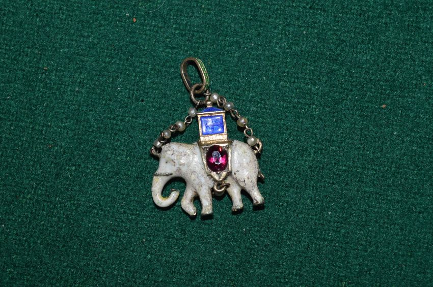 A small enamel elephant pendant.