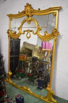 A large and impressive gilt framed over mantel mirror with shell shaped cresting, 230cm high x 182cm wide.