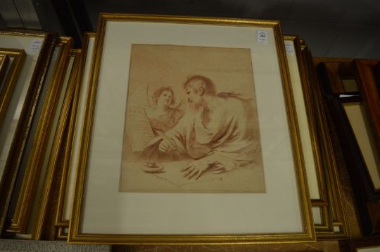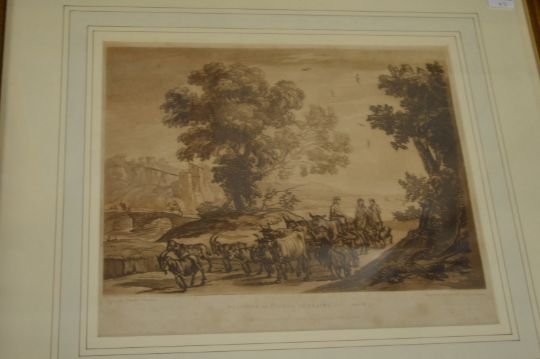 After Bartolozzi, a scholar with an angel, sepia print and various other prints and engravings after David Roberts and others.