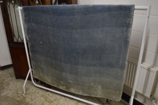 A woollen rug of graduated blue design, 250cm x 160cm.