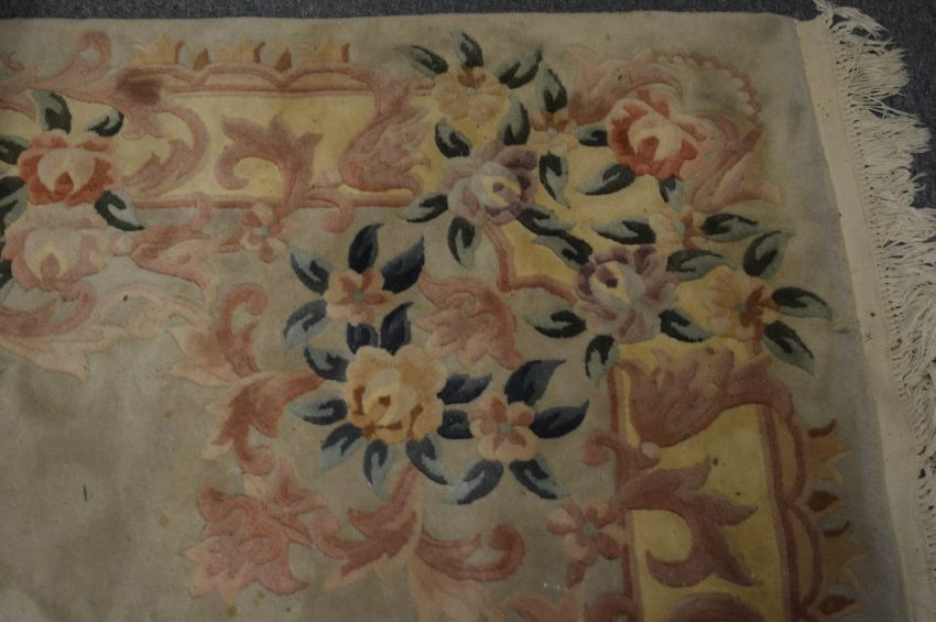 A Chinese beige ground floral decorated rug, 270cm x 180cm.
