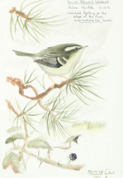 STEVE CALE (CONTEMPORARY) 'Scilly Isles Oct 1983' study of birds, and another of a 'Yellow Browed Warbler' two watercolours both signed with annotations 17.5 x 24.5cm and 24.5 x 17.5cm (2)