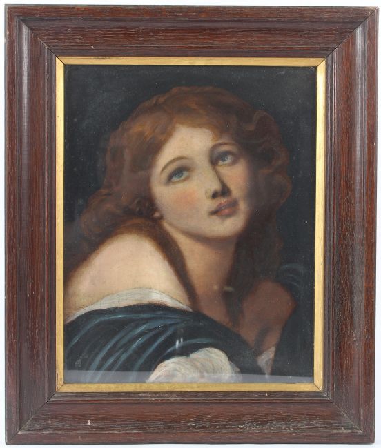 AFTER JEAN BAPTISE GREUZE Head and shoulder portrait of a woman oil on board 39.5 x 31cm