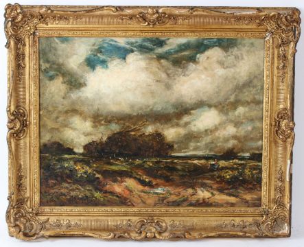 THOMAS WILLIAM MORLEY (1859-1925) Landscape with track and figure in a cart oil on canvas signed