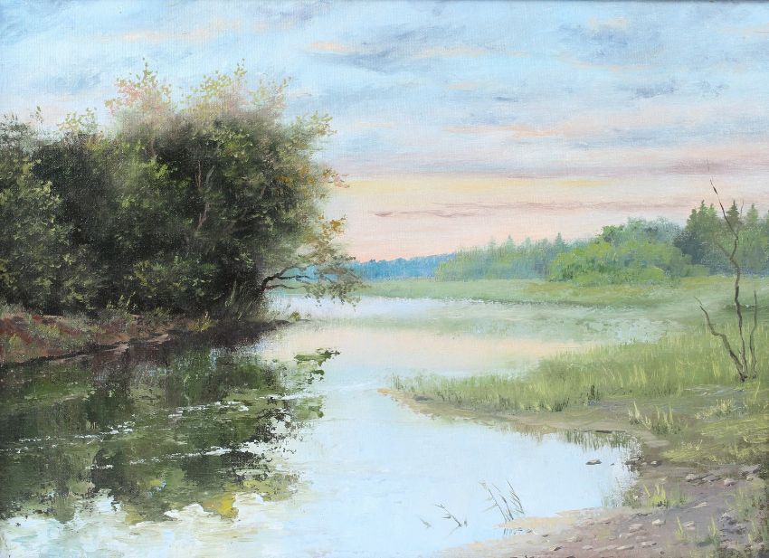 ANNA SELENSKIH Lake view at twilight oil on canvas inscribed verso 39 x 54cm