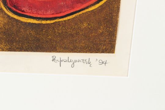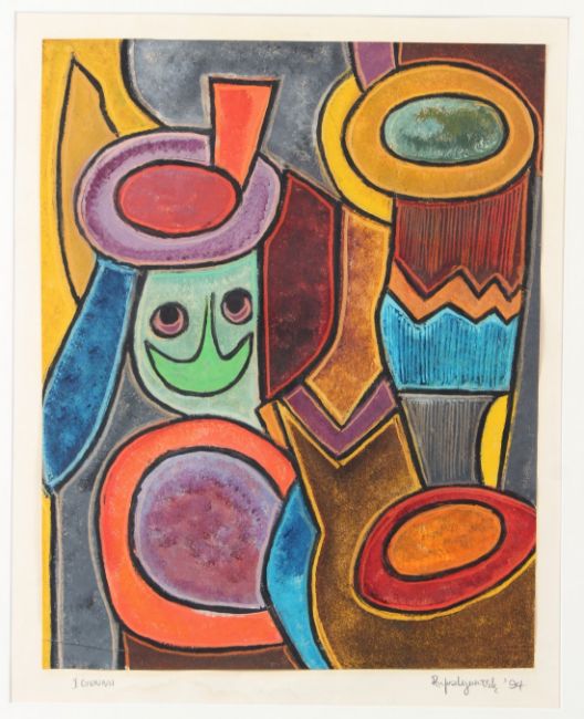 RUFUS OGUNDELE (1946-1996) 'I Gunnu' oil on paper signed and dated '94 unframed 46.5 x 36.5cm