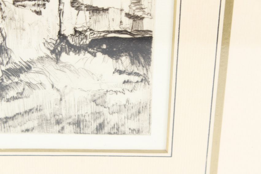 MANNER OF RUSSELL FLINT Nude descending steps from a wall etching 22.5 x 17.5cm