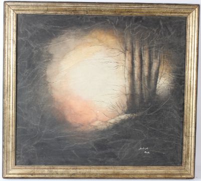 LAYLA AL-ATTAR (IRAQ 20TH CENTURY) Scene of light through woodland oil on canvas signed and dated 1989 64.5 x 73cm