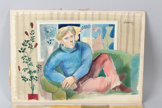 WILLIAM CROSBIE (1915-1999) Portraits of a man and a woman watercolours one signed and mounted on card unframed 38 x 56cm (2)
