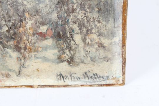 MORTEN MULLER Winter woodland oil on board signed unframed 25 x 36cm