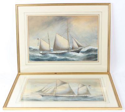 REUBEN CHAPPELL (1870-1940) Ship portrait 'Sunshine' in rough seas and off a coast pair of gouaches on paper, one signed with initials 34 x 52cm (2)