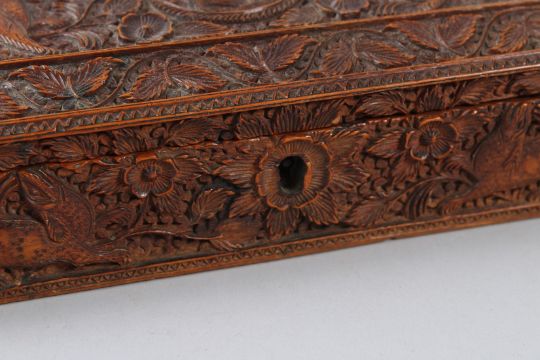 A FINE 19TH CENTURY INDIAN SANDALWOOD BOX.