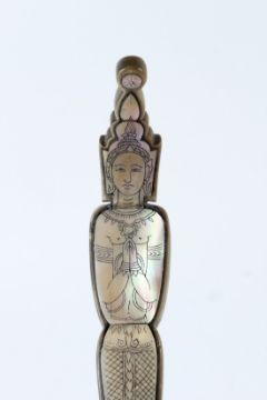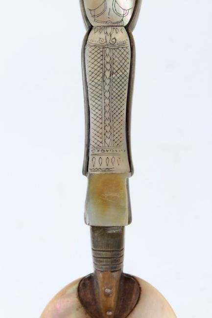 A VERY FINE 19TH CENTURY HORN AND MOTHER OF PEARL CEREMONIAL THAI LADLE.