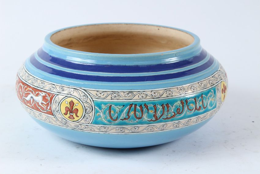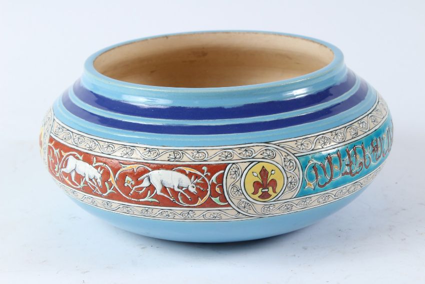 A VERY FINE AND UNUSUAL 19TH CENTURY PERSIAN STYLE ORIENTALIST FRENCH BORDEAUX GLAZED CERAMIC BOWL.