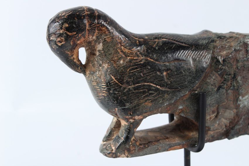 AN INDIAN CARVED GREEN HARDSTONE FIGURE, 19TH / 20TH CENTURY, modelled as the front end of a parrot.