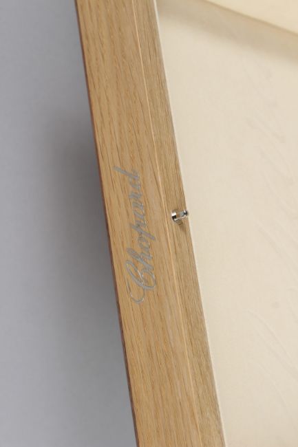 A GOOD CHOPARD OAK AND WALNUT INLAID JEWELLERY AND WATCH BOX, with original outer box and paperwork.