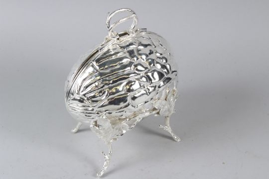 A PLATED BISCUIT WARMER in the form of a walnut.