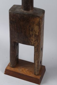 A LARGE TRIBAL CARVED WOOD BUST on a stand.