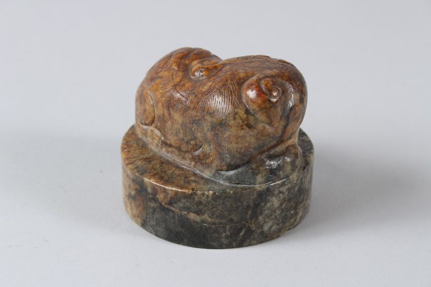 A LARGE CHINESE SOAPSTONE SEAL, 19TH CENTURY, in the form of a lion dog, bearing Hang Gao Di Yin mark, referring to the first emperor of the Han Dynasty Liu Bang (256 - 195 BC).