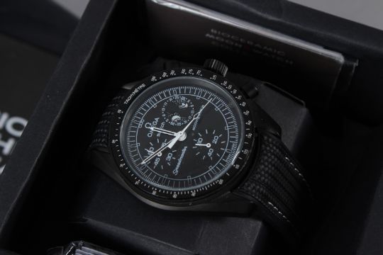 AN OMEGA SWATCH MISSION TO THE MOOPHASE BIOCERAMIC MOON SWATCH, boxed.