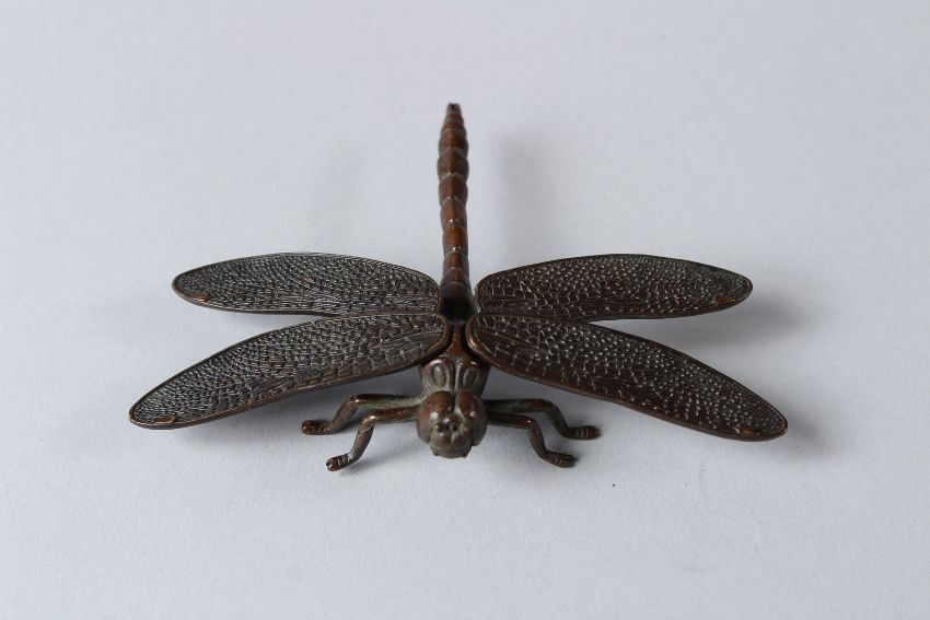 A JAPANESE OKIMONO BRONZE DRAGONFLY.