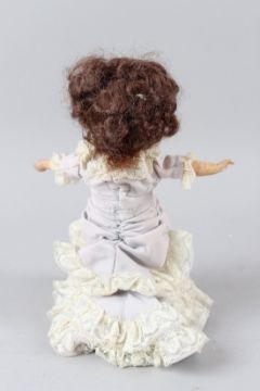 A SMALL VICTORIAN BISQUE PORCELAIN HEADED DOLL.
