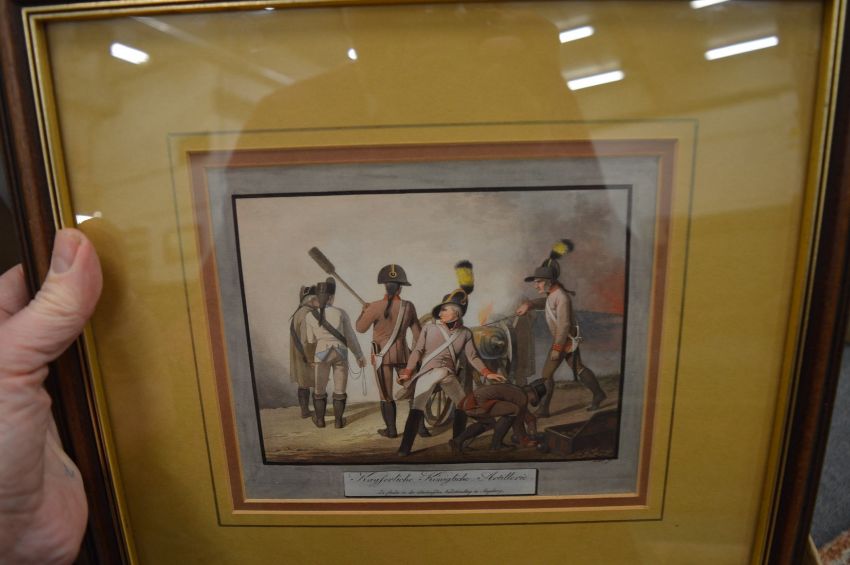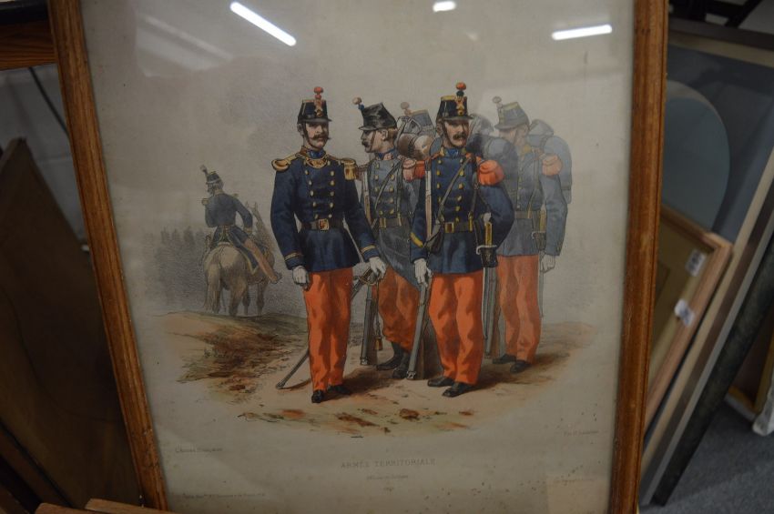 A collection of military prints and a pair of prints after Baxter.