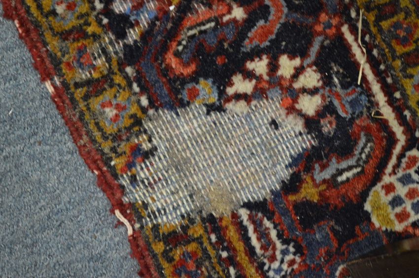 A Persian rug with geometric design (moth damage) 284cm x 192cm.