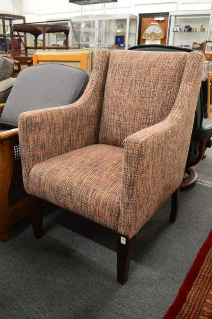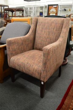 A modern tweed style upholstered tub shaped armchair.