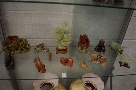 Quantity of soapstone and other Chinese carvings.