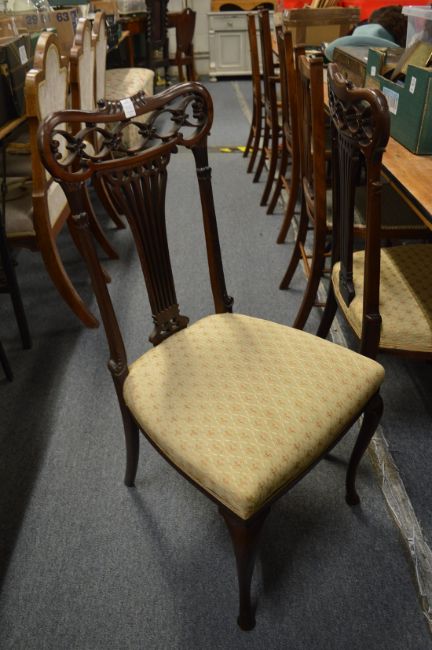 A late Victorian inlaid rosewood occasional chair and a pair of mahogany high back chairs.