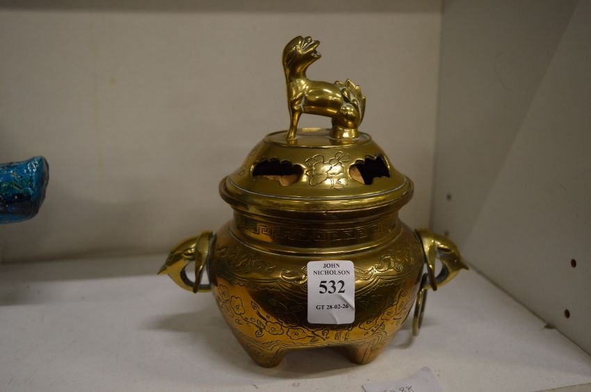 A Chinese bronze censer with engraved decoration.