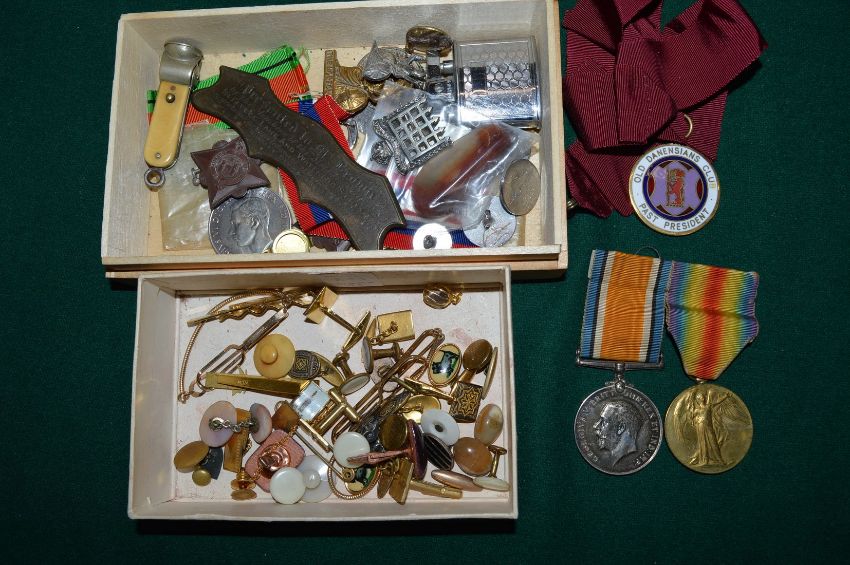 A group of medals, badges, cufflinks etc., the medals relating to Second Lieutenant R E Brown.