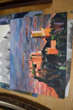 Contemporary artwork, four oil on board unframed.