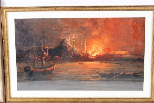 J B ALLEN AFTER THOMAS ALLOM (1804-1872) 'Smyrna' engraving 21 x 28cm J T WILLMORE AFTER F DANBY 'Gate of the Seraglio-Constantinople' engraving 21 x28cm and another coloured print of an Eastern harbour 23 x 40cm (3)