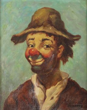 M HERTY Portrait of a boy clown oil on canvas signed 49 x 39cm