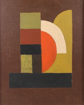 GEOMETRIC ABSTRACTION oil on canvas in white painted frame 49 x 39cm