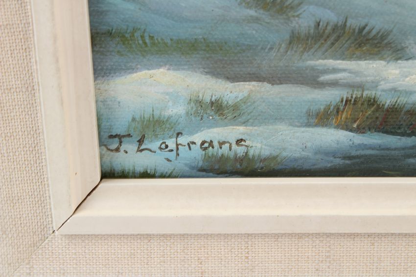 J LAFRANC Dutch winter landscape oil on board signed 23 x 49cm