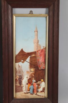O. PILNY, A PAIR OF ORIENTALIST PRINTS, depicting Arab Street scenes with figures, in moulded oak frames.
