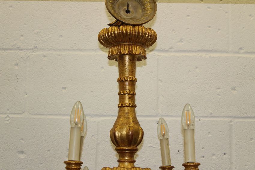 AN ORNATE GILTWOOD TWO-TIER, TWELVE-BRANCH CHANDELIER.90cms diameter.