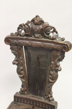 A 19TH CENTURY CONTINENTAL CARVED WALNUT HALL SEAT.