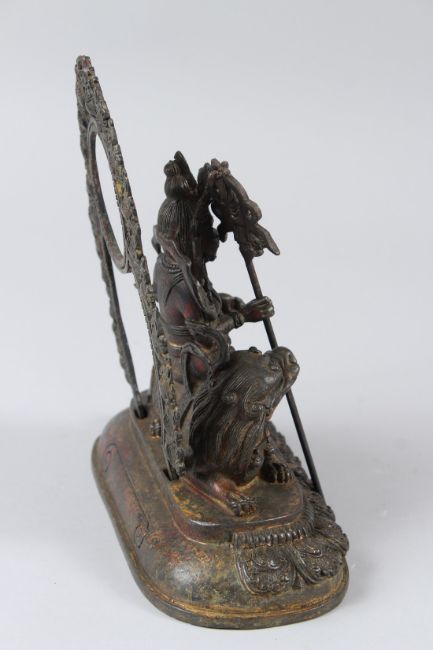 A TIBETAN GILT BRONZE STATUE OF VAISRAVANA.