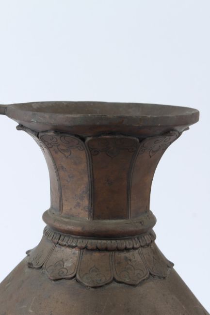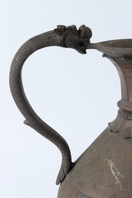 A VERY LARGE INDIAN OR TIBETAN BRASS EWER with dragon shaped handle and spout.
