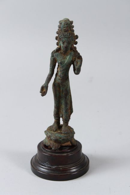 A RARE 7TH - 8TH CENTURY JAVANESE BRONZE FIGURE OF A DEITY.