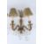 A PAIR OF ORMOLU TWIN-BRANCH WALL APPLIQUES, with cut glass pear shape drops, complete with shades.