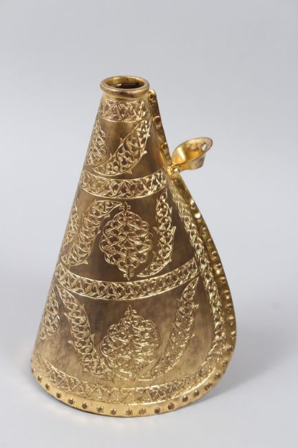 A "TOMBAK" OTTOMAN TURKISH WATER FLASK, with engraved decoration.