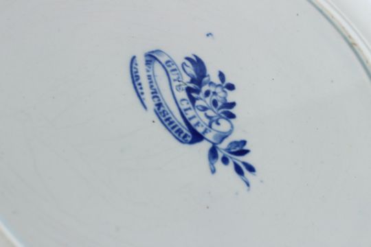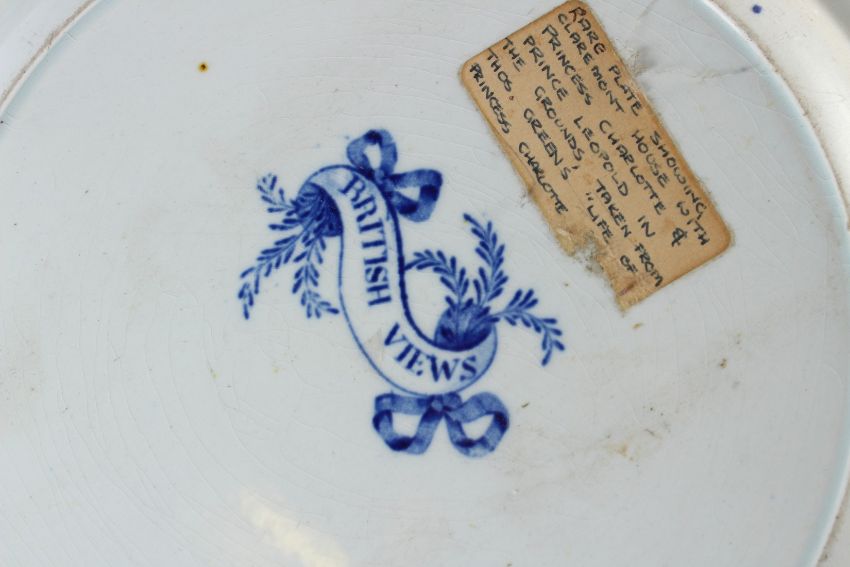 FOUR 19TH CENTURY TRANSFER PRINTED BLUE AND WHITE PLATES, each with a named view: Guys Cliff, Warwickshire, Kirkham Priory, Yorkshire, Endsleigh Cottage and Claremont House.