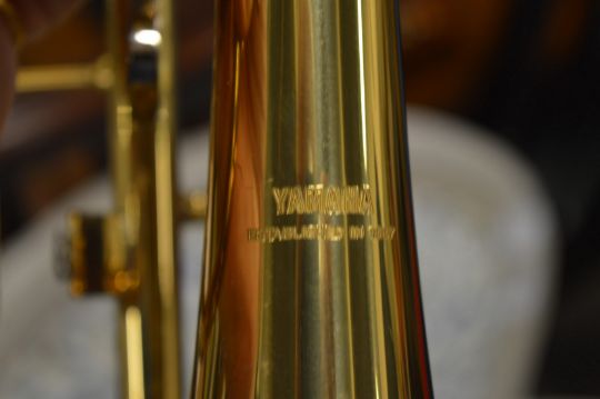 A cased Yamaha cornet.